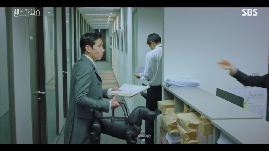 펜트하우스 경찰서에서. 그리고 봉태규의 변호사 사무실에서 톰브라운 강아지가방을 들고있는 모습니다. 극중 캐릭터가 조금 가볍고 정신 사나운 캐릭터라고 생각하는데, 가방도 방정맞아보이는....ㅋㅋㅋ 관련정보를 찾다가 다른 디자인들도 있다는 것을 알게 되었습니다. 톰브라운 온라인몰에서 가져온 정보이며, 하단에 가격 정보도 적혀있습니다.